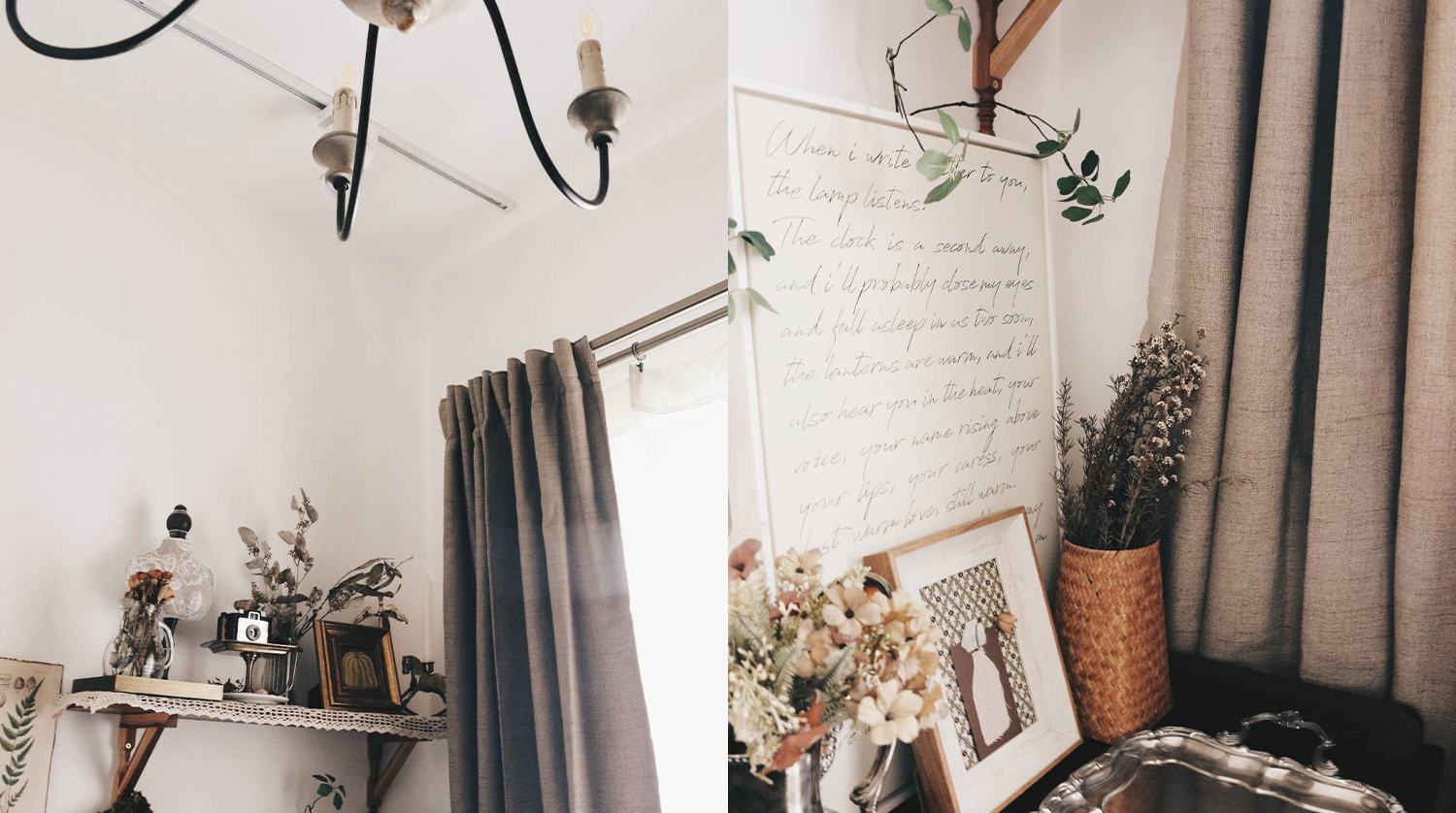 最喜歡的是整組窗簾連五金都統一使用古銅色——窗簾桿、螺絲、卡榫,每個細節都做到位。那份一致性的質感,真的讓小空間的氛圍完全不同,比想像中更有層次、更耐看。