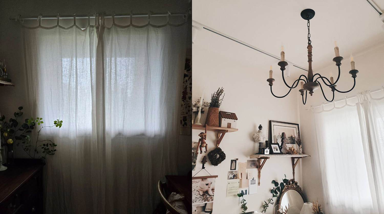 最近秋天的感覺越來越明顯,生活的步調也慢慢沉穩下來。一直想替小房間添一點季節色調,這次挑選的一布一紗窗簾組恰好符合心中「秋意」的樣子。收到時被棉麻束口袋包裝驚喜到,觸感與質感都很講究,讓人還沒裝上就先愛上。