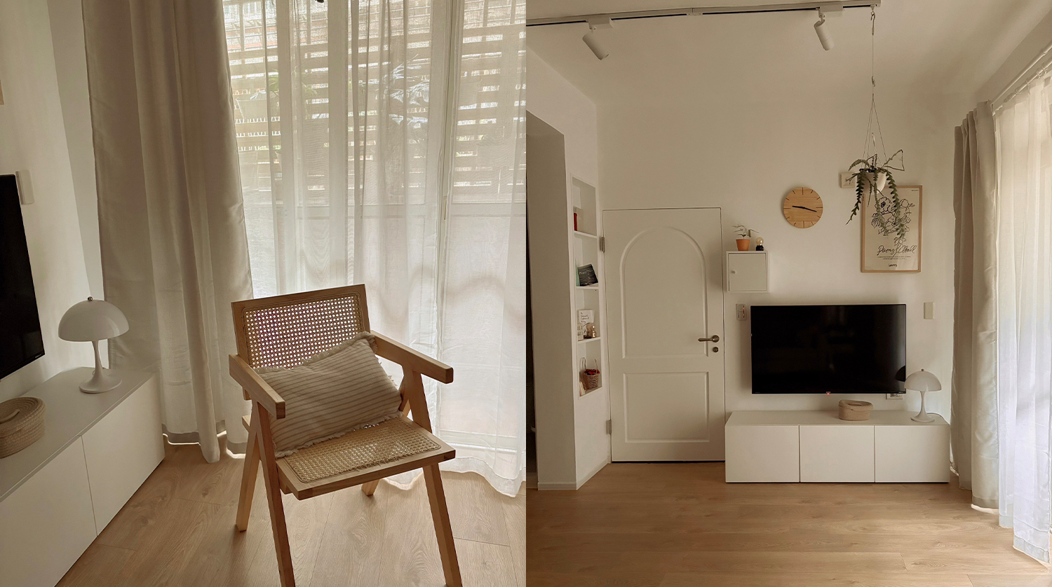 一年四季裡,我最喜歡的就是有楓葉的秋天。涼爽的空氣與落葉飄落的畫面,總讓生活添上一點浪漫。原本客廳使用窗簾盒,但一直想試試更自然、輕盈的窗簾桿。於是鼓起勇氣拆掉前屋主留下的窗簾盒,到特力屋租了電鑽,第一次親手在牆上鑽孔、安裝窗簾桿,也算完成了小小的居家挑戰。