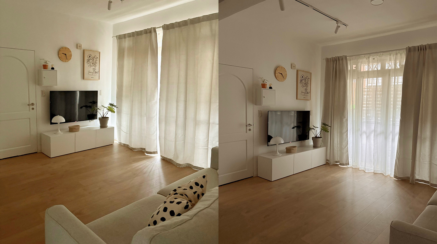 秋天總帶著浪漫氣息,落葉與涼意讓生活慢了下來。這次為客廳換上更自然的窗簾桿與窗簾組,也順便實現一直想嘗試的空間改造心願。