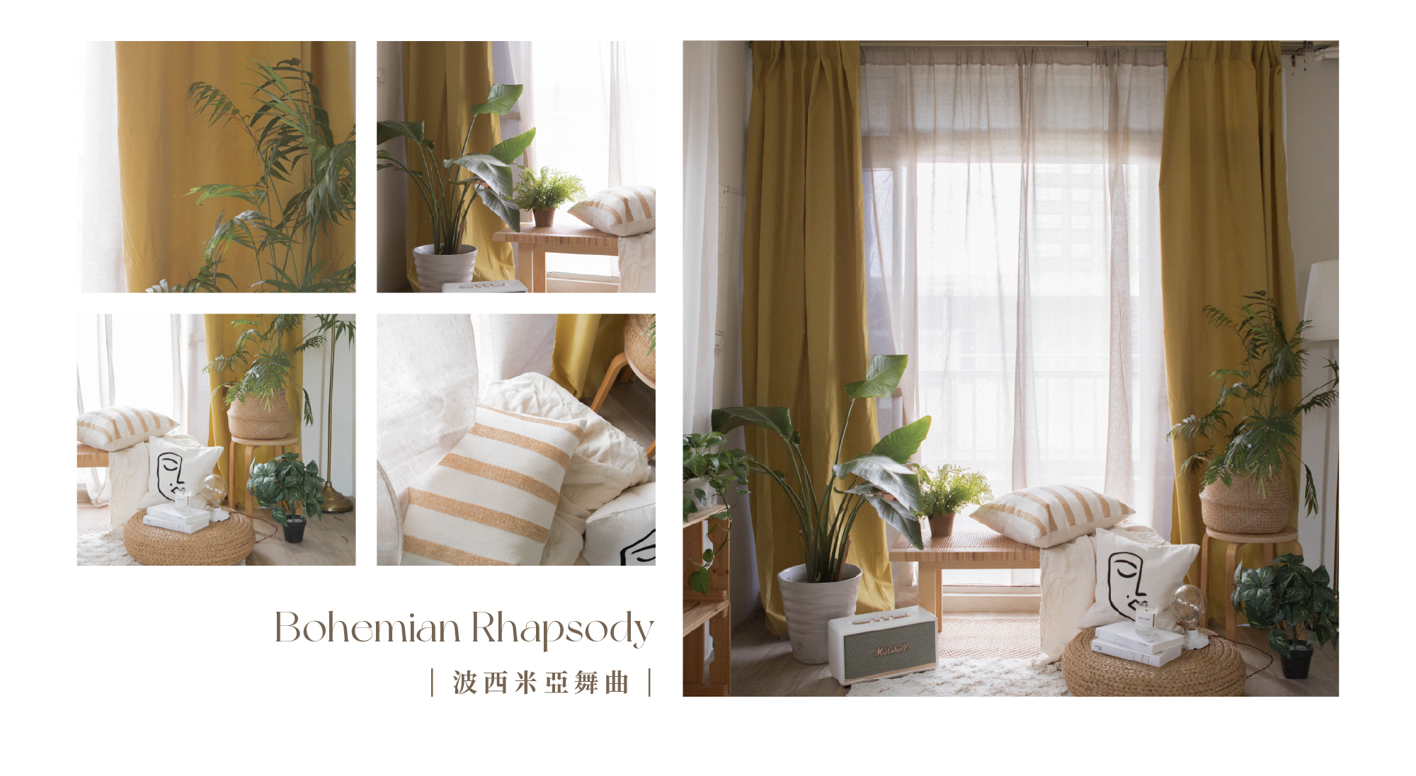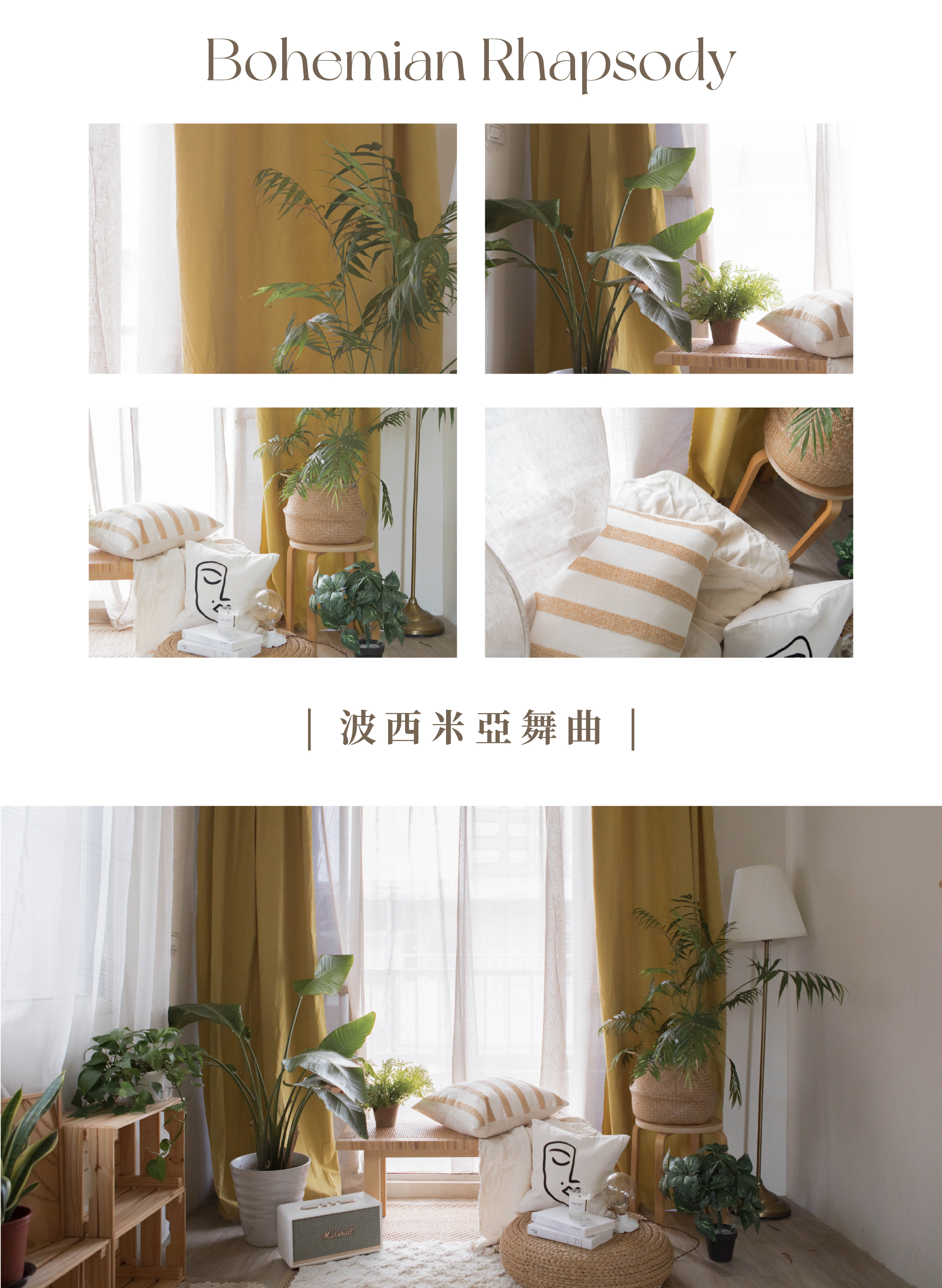 桃皮絨布簾 芥末黃|竹節紗簾 卡其