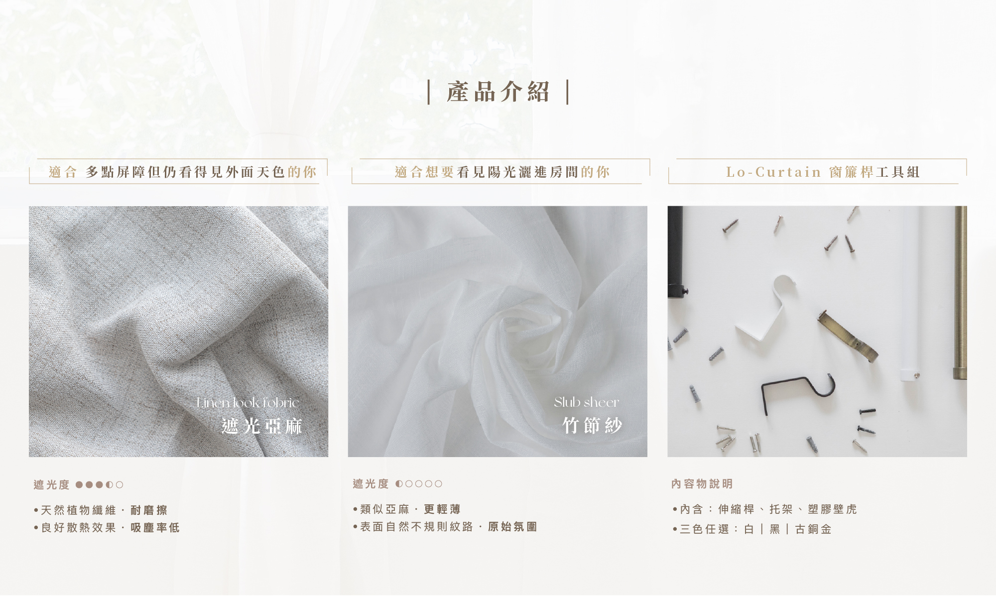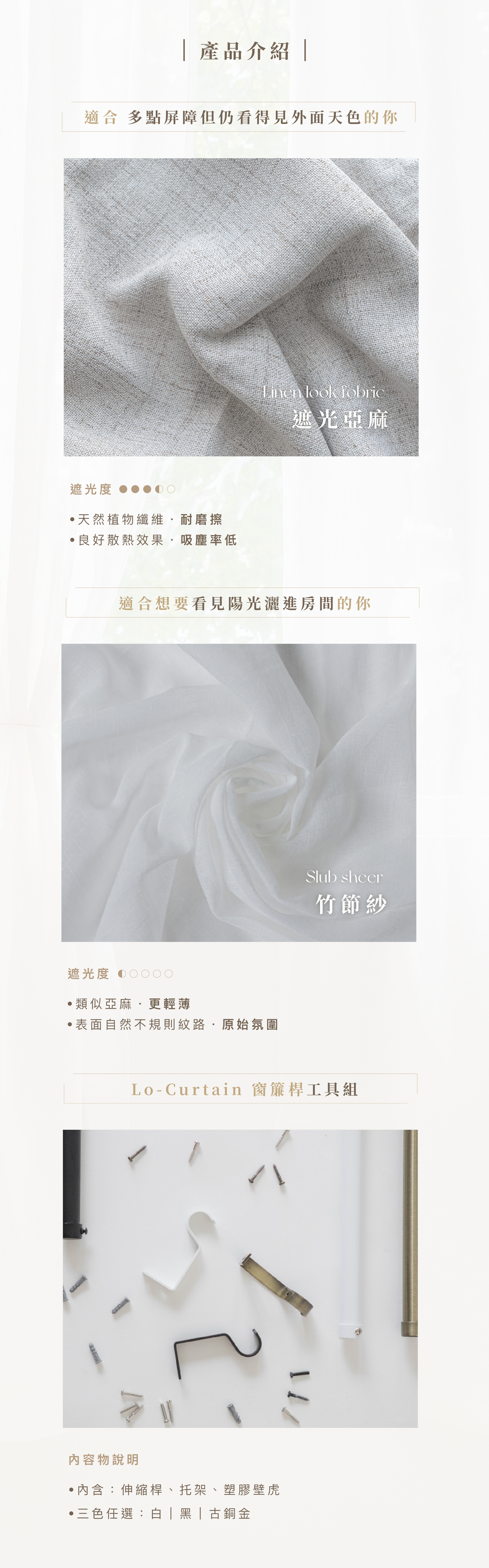 遮光亞麻布簾 米杏|竹節紗簾 白