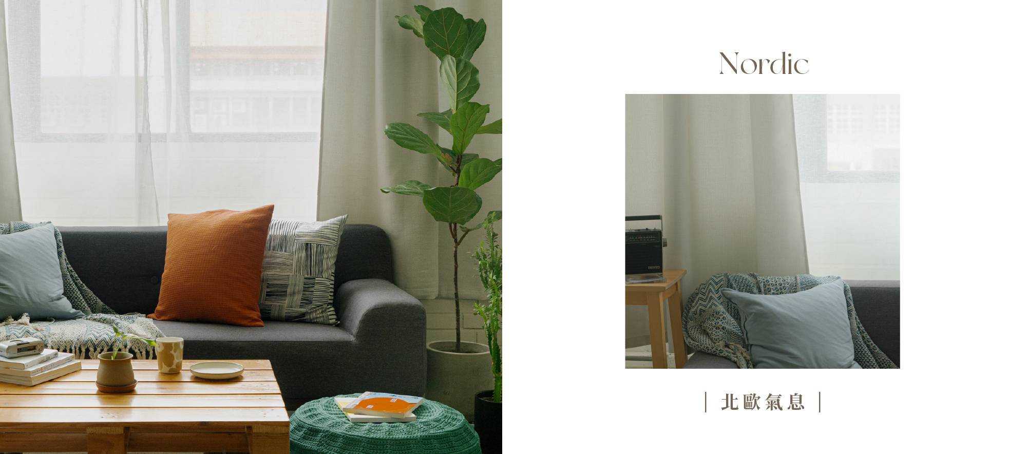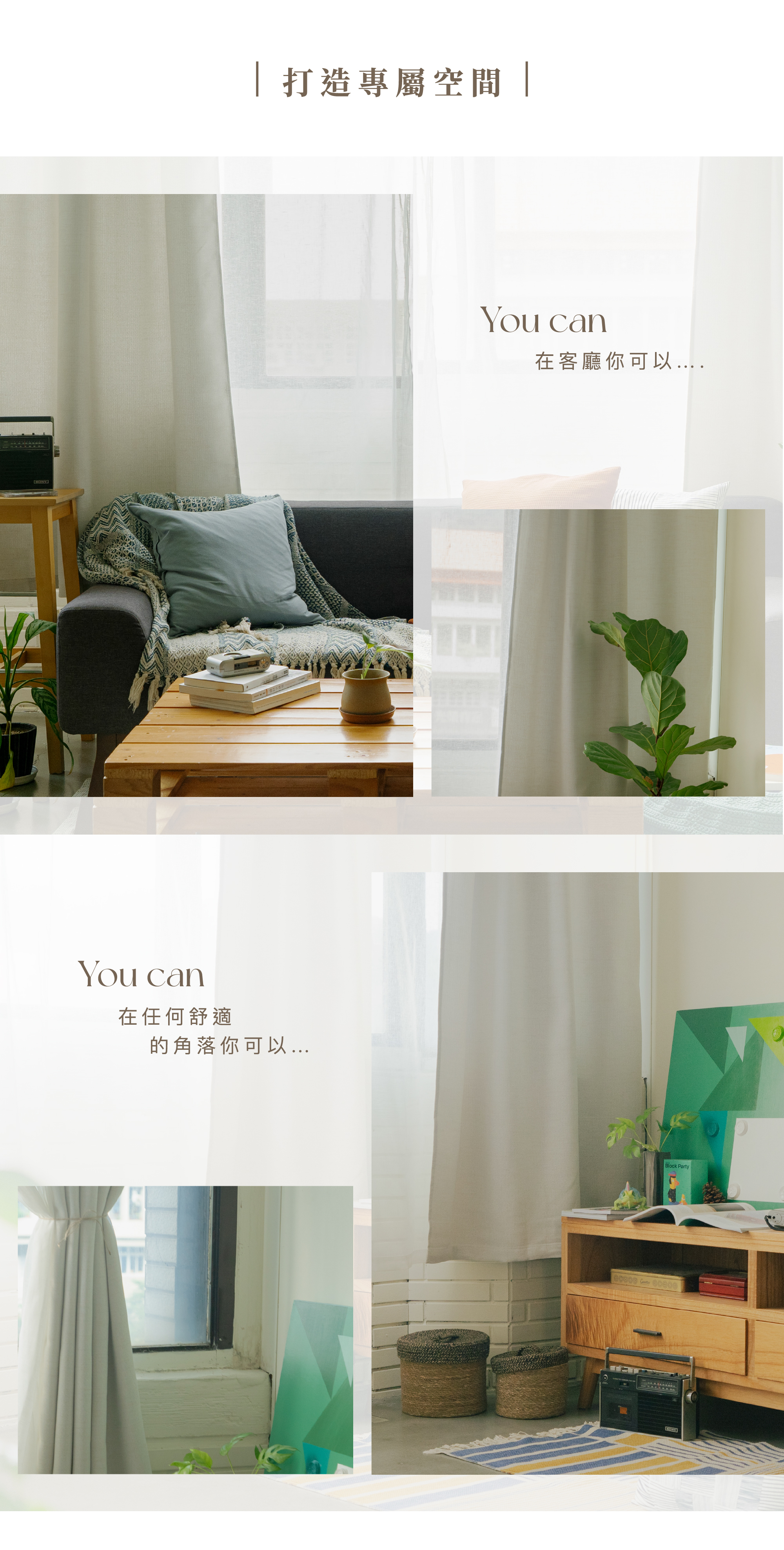 ・風格套組:一布一紗兩種材質各含兩片,共四片窗簾