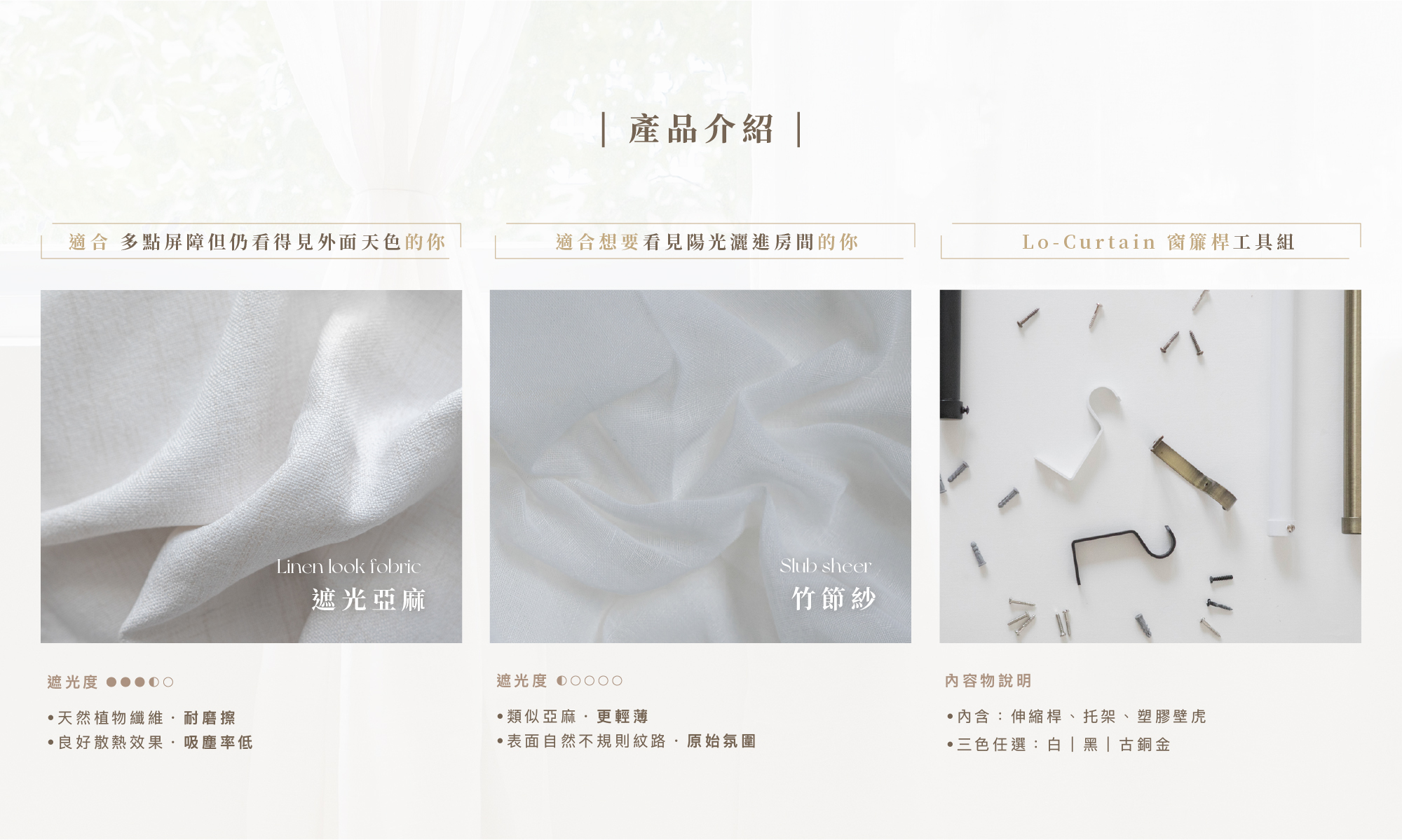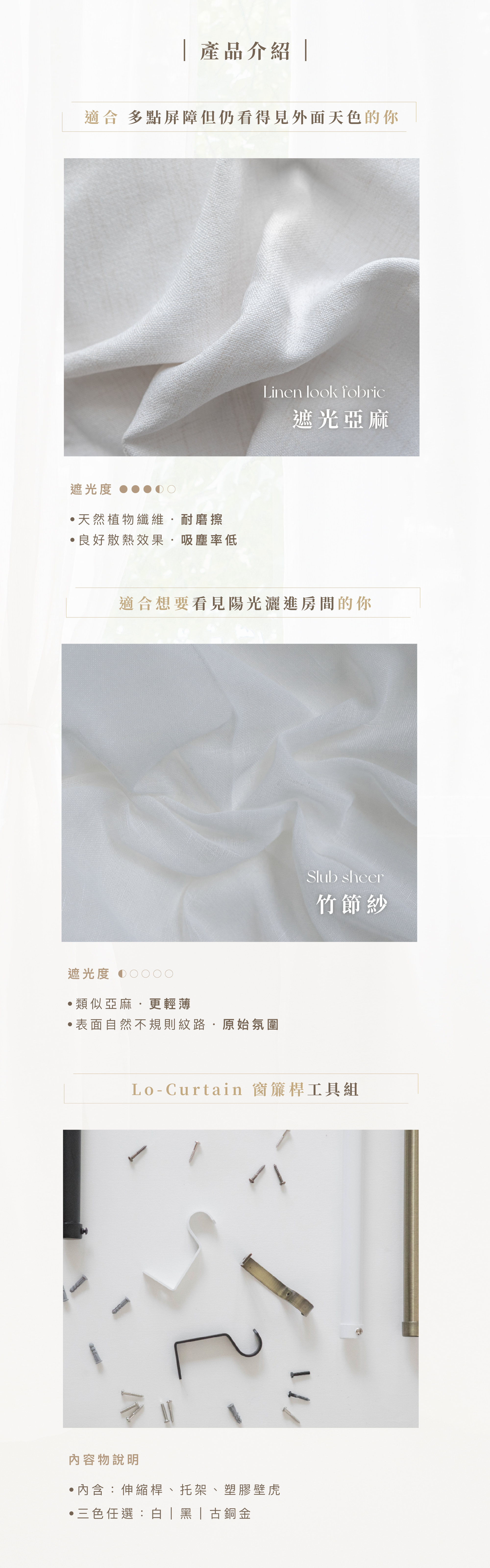 遮光亞麻布簾 白色|竹節紗簾 白色
