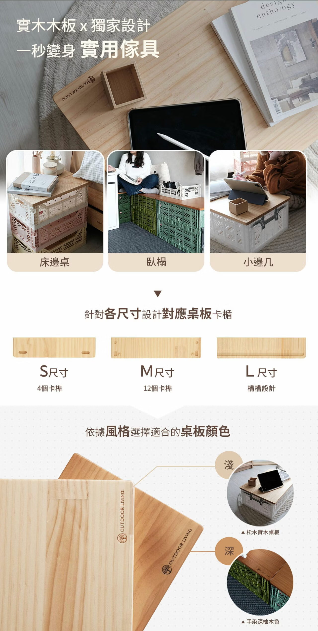 Aykasa疊收納籃量身定做的專屬原木桌板,